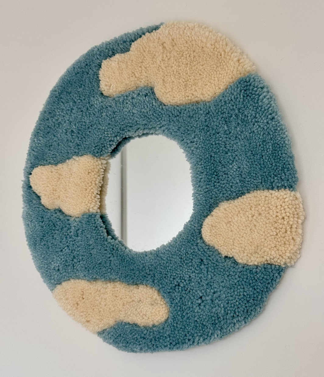 Bring a dreamy, whimsical touch to your space with our Cloudscape Tufted Mirror. Inspired by the beauty of the sky, this handmade piece features soft, fluffy clouds floating against a serene blue background. The plush tufted frame adds texture and warmth, making it a cozy yet modern statement piece for any room.